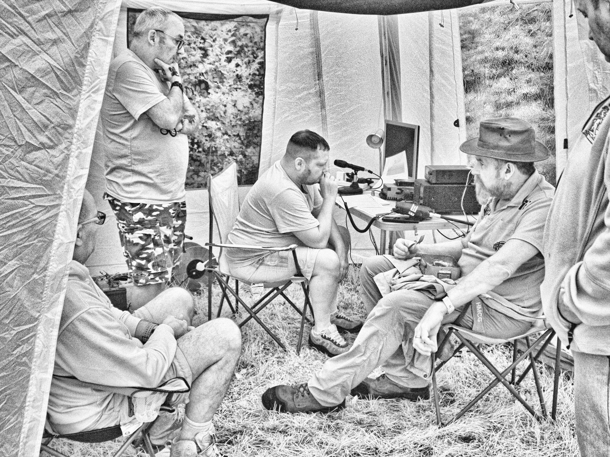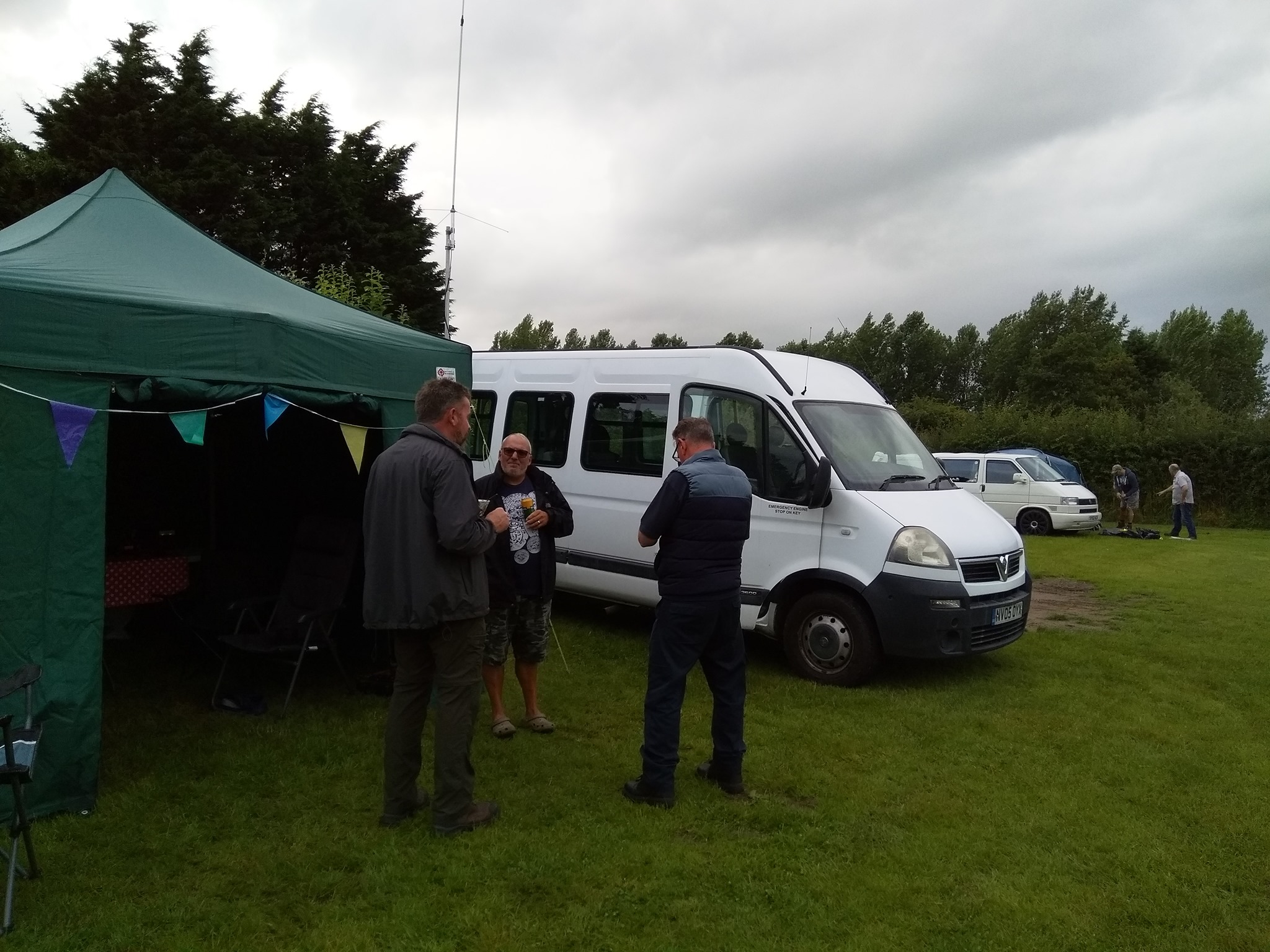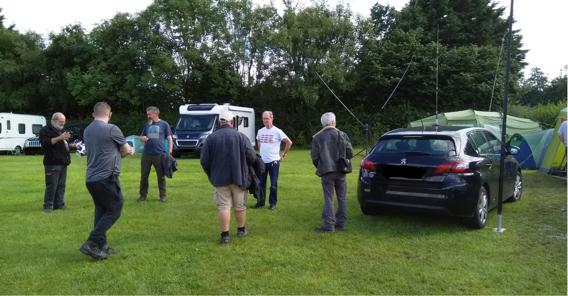 Members of Leyland and District Amateur Radio, Quantum Technology Club, Southport and District Amateur Radio Club and non club members having a socially distanced chat in summer 2021.